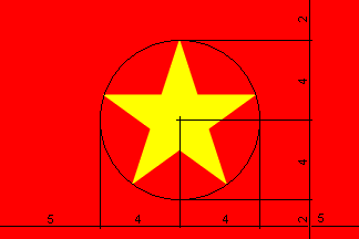 Tỷ lệ của Quốc kỳ là 2:3 với ngôi sao vàng ở trung tâm thể hiện sự lãnh đạo của Đảng Cộng Sản Việt Nam. Màu đỏ thể hiện cho máu và các cuộc cách mạng của nhân dân Việt Nam. Năm đỉnh của ngôi sao thể hiện cho 5 giai cấp: công nhân, nông dân, quân đội, trí thức và thương gia.